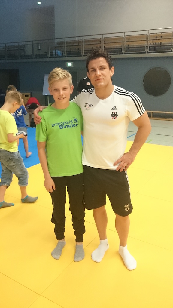 Zwei Villinger Judoka beim „judo & more“ in LindowTimo Keßler und Etienne Zeiger vom Judosportverein Villingen besuchten das Feriencamp „judo & more“ des DJB in Lindow (Brandenburg). Der erste Tag begann gleich mit einem Highlight. Nachdem die Zimmer der 133 gemeldeten Jugendlichen, Trainer und Betreuer bezogen waren, ging es auf die Judomatte, und einer der Stargäste Sven Maresch (3. WM 2014) leitete das erste Training. Trotz WM-Vorbereitung nahm er sich Zeit für das Feriencamp und gab im Anschluss des Trainings Autogramme und Tipps an die Judokas weiter. Am nächsten Tag wurden auf der Tatami (Judomatten) die Techniken von Sven Maresch wiederholt, und die DJB-Trainer M. Weyres und S. Helbing zeigten weitere Folgetechniken. Der nächste Stargast war Andreas Tölzer (3. Platz Olympische Spiele in London 2012), der für die ganze Woche blieb. Andreas Tölzer zeigte seine Spezialtechnik in Einzelschritten und die Sportler versuchten sie mit Erfolg nachzumachen. Am Abend lüftete er das Geheimnis der Namensgebung des „Tölz-Drehers“. Die nächste Judoeinheit begann im gewohnten Ablauf. Die Erwärmung erfolgte gemeinsam und danach gingen die verschiedenen Gruppen, aufgeteilt nach Graduierung, in die weiteren Hallen zum Techniktraining. Am Vormittag wurden Standtechniken trainiert und am Nachmittag Bodentechniken. Danach trafen sich alle Judokas in der großen Halle zum gemeinsamen Randori (Übungskampf). Aber auch das „more“ kam nicht zu kurz. Am Abend wurde Stockbrot am Lagerfeuer gebacken und so fand der Tag einen gemütlichen Ausklang. Mittwoch war der judofreie Tag. Als erstes stand ein Crosslauf auf dem Plan, bei dem jeder Teilnehmer verschiedenen Stationen durchlaufen musste. Schweißgebadet kamen die Sportler im Ziel an und gaben auf der Strecke ihr Bestes, damit sie in der Teamwertung auf den vorderen Plätzen landen konnten. Interessant und vielseitig war der Nachmittag. Jeder Teilnehmer sollte sich mindestens bei einer angebotenen Aktivität beteiligen, z. B. Kanu fahren, Bogenschießen, Klettern am Kletterturm, Beachvolleyballturnier, Fußballturnier, Tischtennisturnier und Sumo. Nach diesem anstrengenden Programm bei einer Hitze von 35 Grad im Schatten hatten sich alle eine Abkühlung im See verdient. Am Donnerstag ging es nach dem Frühstück wieder auf die Matte. Wie gewohnt trainierten die Sportler die Standtechniken am Vormittag und die Bodentechniken am Nachmittag. Abends stand für alle die Nachtwanderung auf dem Programm. Am letzten Tag des Feriencamps „judo & more“ in Lindow stand noch einiges auf dem Programm. Neben dem Judotraining lief noch ein Fußballturnier, wobei sich die Mannschaften selbst zusammenstellten. Timo und Etienne’s Mannschaft kam ins Finale, wobei sie sich gegen die Mannschaft des TSV Bayer 04 Leverkusen (überwiegend Betreuer und Trainer) geschlagen geben mussten. Das Highlight am Abend war die Disco mit der Diashow, wo von allen „Knippswütigen“ Bilder gesammelt und gezeigt wurden. Insgesamt war es für Timo und Etienne ein voller Erfolg. Sie haben viel gelernt und trotz der Schweißperlen hat es jede Menge Spaß gemacht. Die beiden Villinger konnten sogar das Sportabzeichen absolvieren, das traditionell an der Sportschule durchgeführt wird.