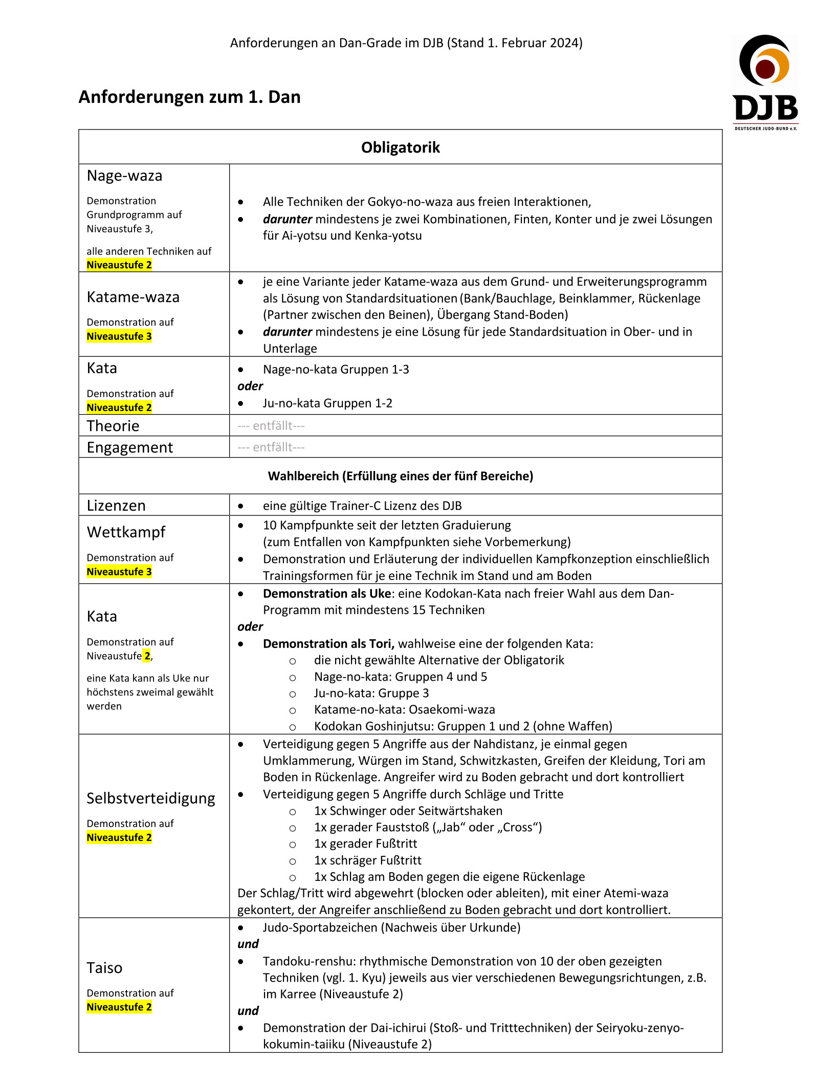 | 1. Dan | schwarz | Shodan (Programm) | Meister |