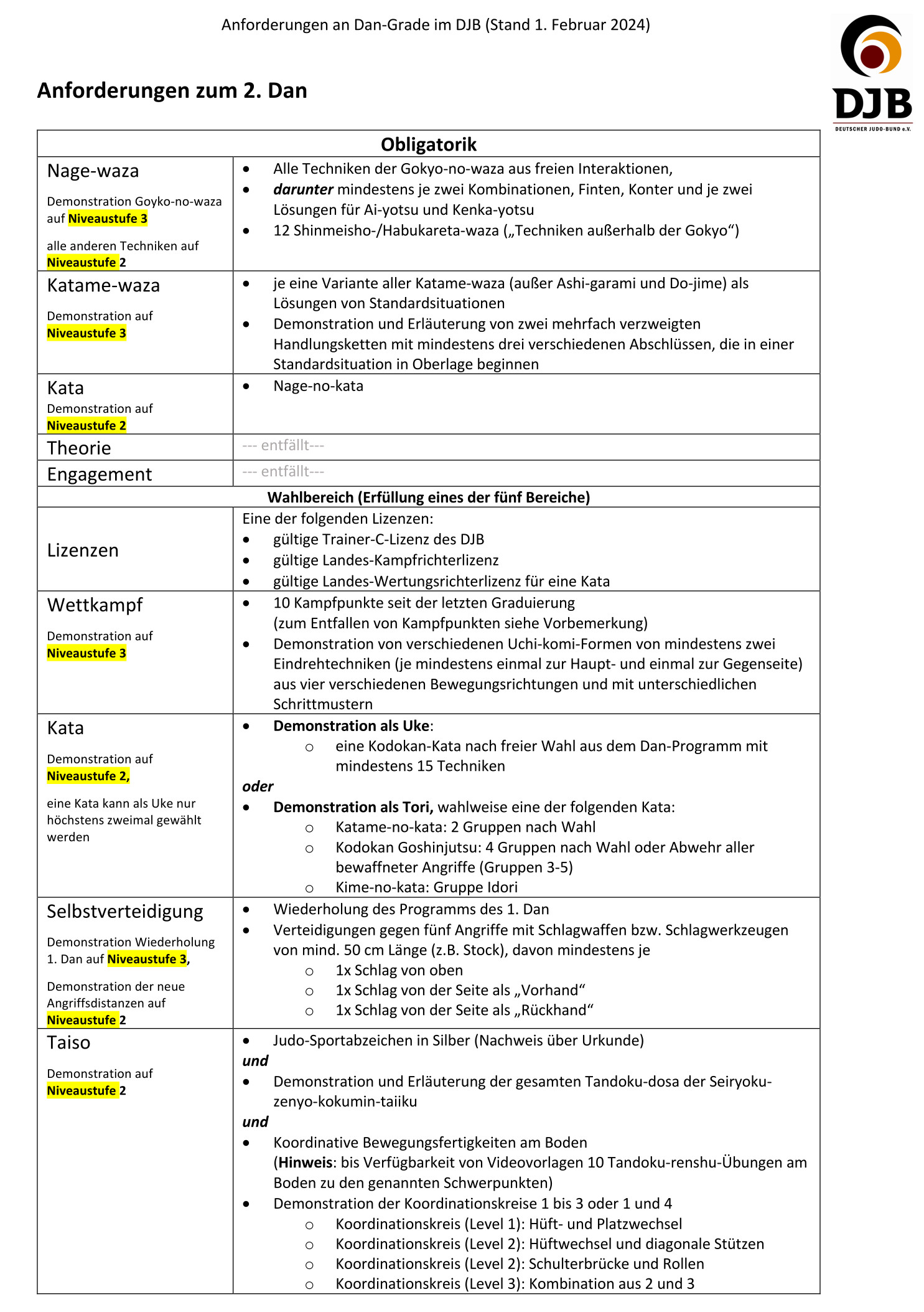 | 2. Dan | schwarz | Nidan (Programm) | Meister |