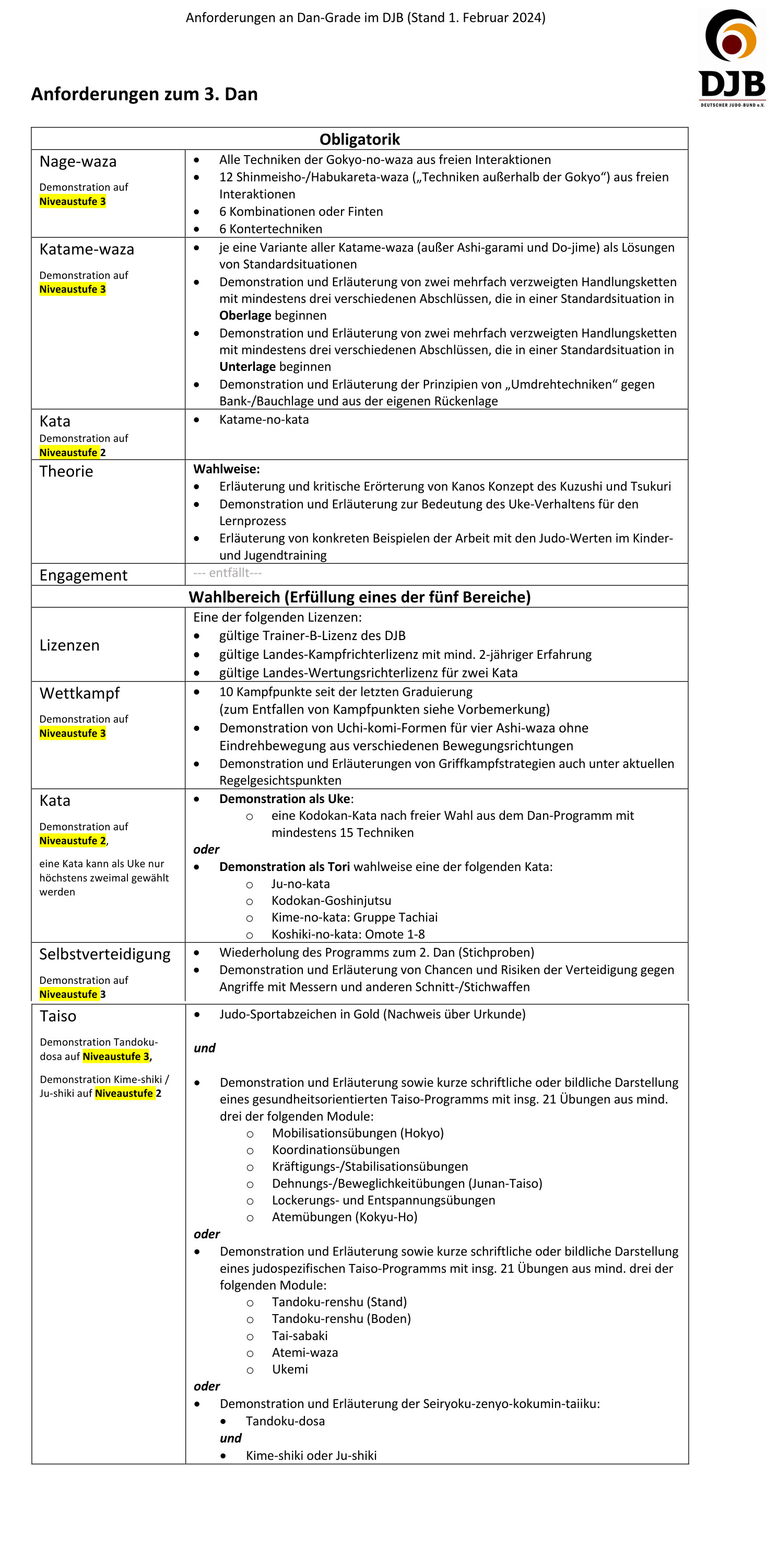 | 3. Dan | schwarz | Sandan (Programm) | Meister |
