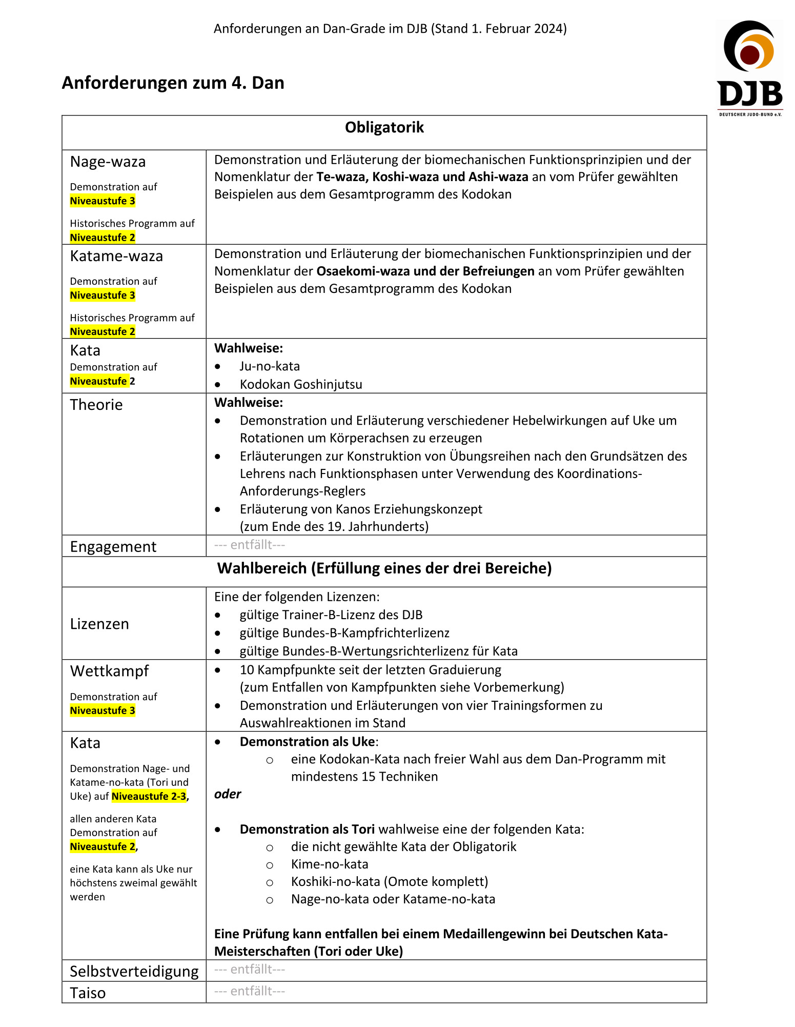 | 4. Dan | schwarz | Yodan (Programm) | Meister |